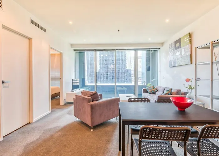 45m²のCollins St, Southern Cross, 2 Bd, Parking, Free Wifi メルボルンアパートはカールトン庭園から徒歩で約25分で、Sea Life メルボルン水族館などの家族連れに人気のスポットから1キロメートルの距離の場所にあります。 プールを提供するホテルは、ビクトリア警察博物館すぐ近くです。